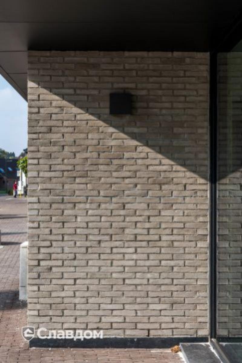 Terca Latero Basalto – керамический облицовочный кирпич ручной формовки размером 218х102х50 мм. Цвет бежево-белый, поверхность с легкими потертостями. Край кирпича рваный, не обработанный. Произведен в Бельгии.